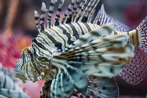En los rayos de su aleta dorsal, el pez león posee pequeñas bolsas que contienen un potente veneno, que utiliza para su defensa.